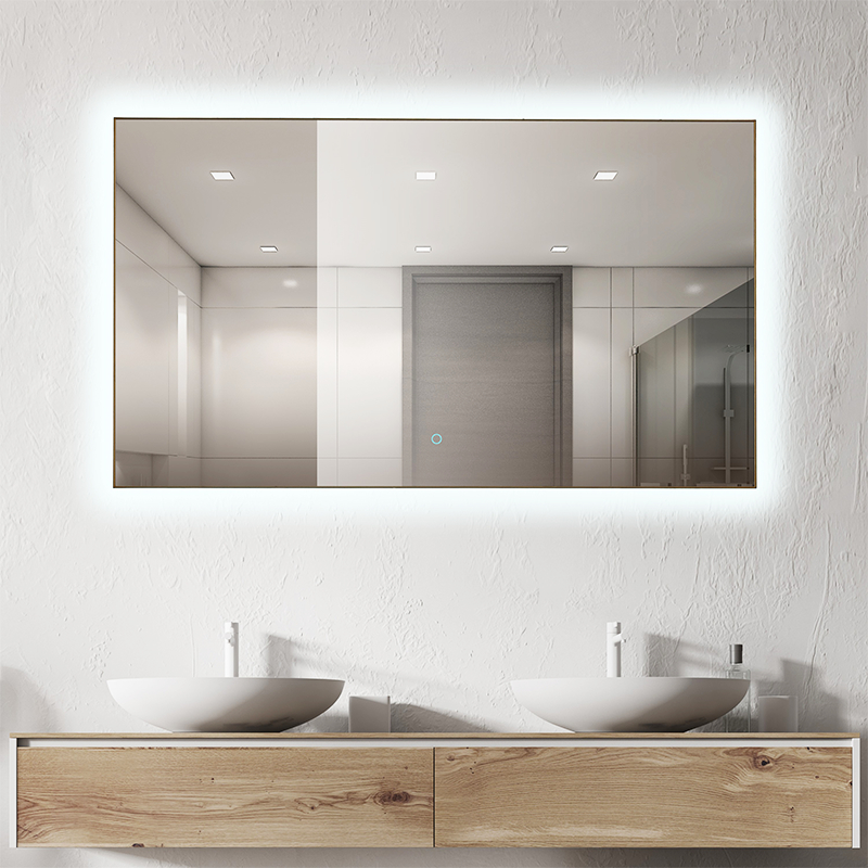 В центре нашегозеркало Это инновационный дизайн, интегрирующий светодиодные огни в алюминиевую раму, создавая мягкий,даже свечение, которое улучшает видимость и атмосферуБоковые светодиоды устраняют резкие тени, делаязеркалоКроме того, светодиодное освещение энергоэффективно, обеспечивая долговечную яркость, сохраняя при этом низкие затраты на энергию.зеркало в функциональный, но стильный светильник для вашего пространства.